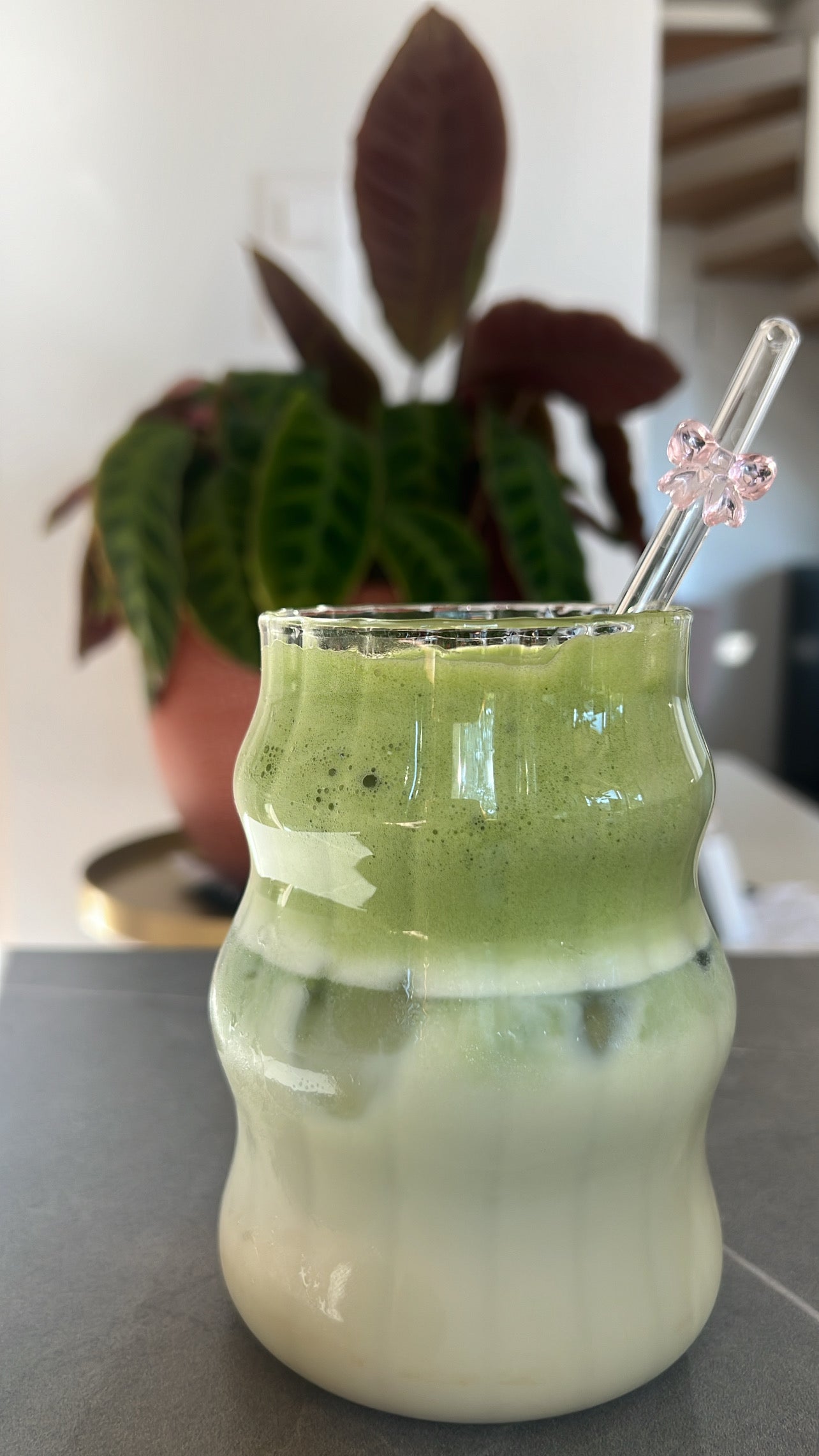 En matcha latte (lait normal ou végétal), attention un lait trop goûtu change le goût du matcha.
